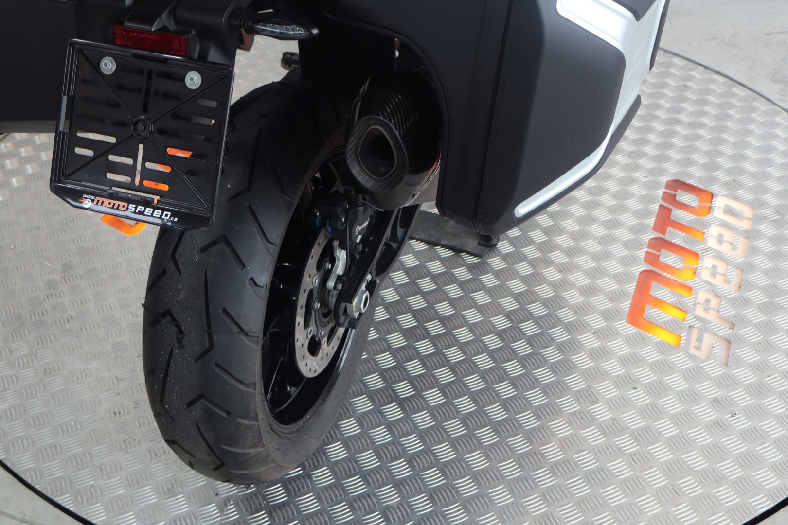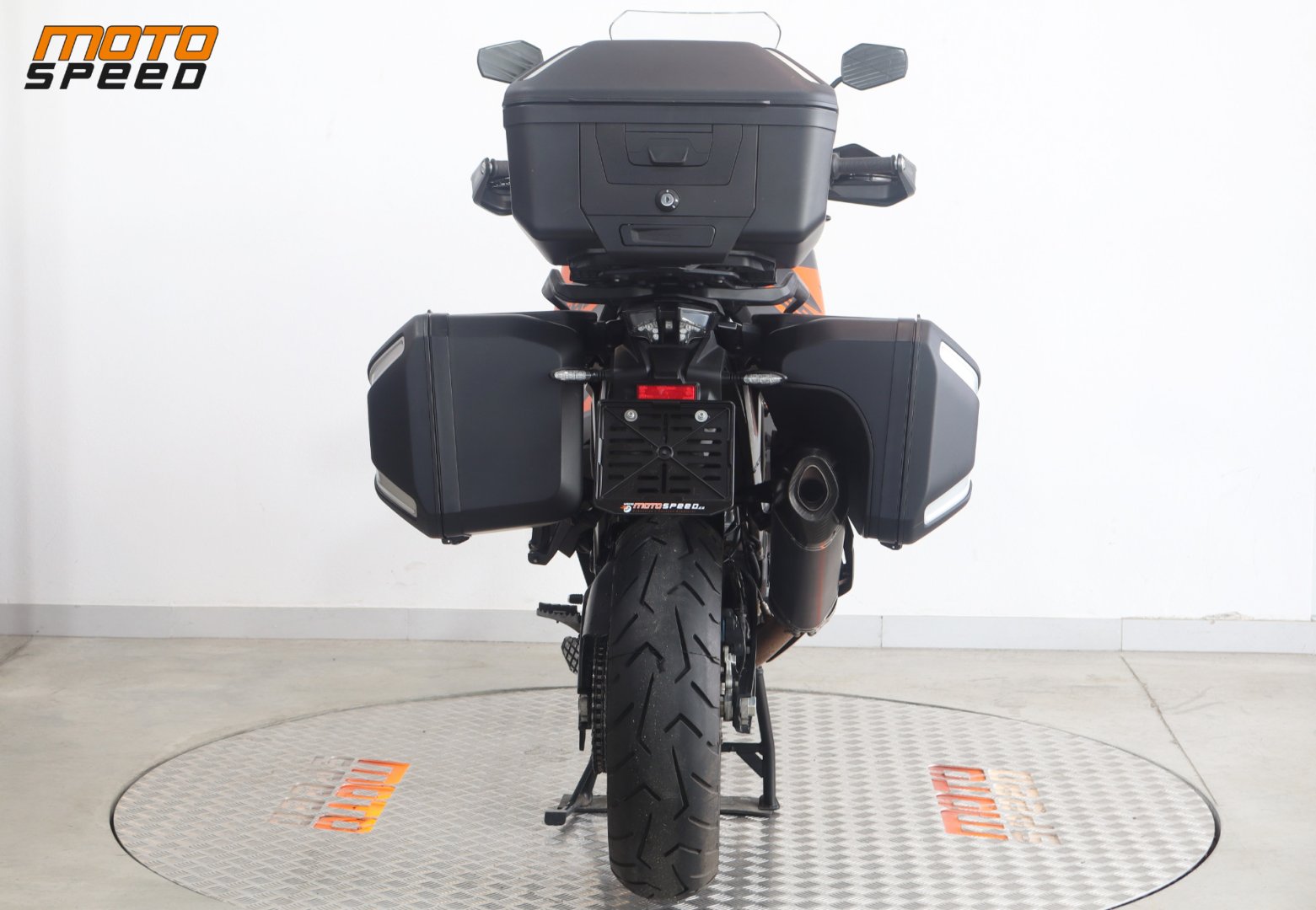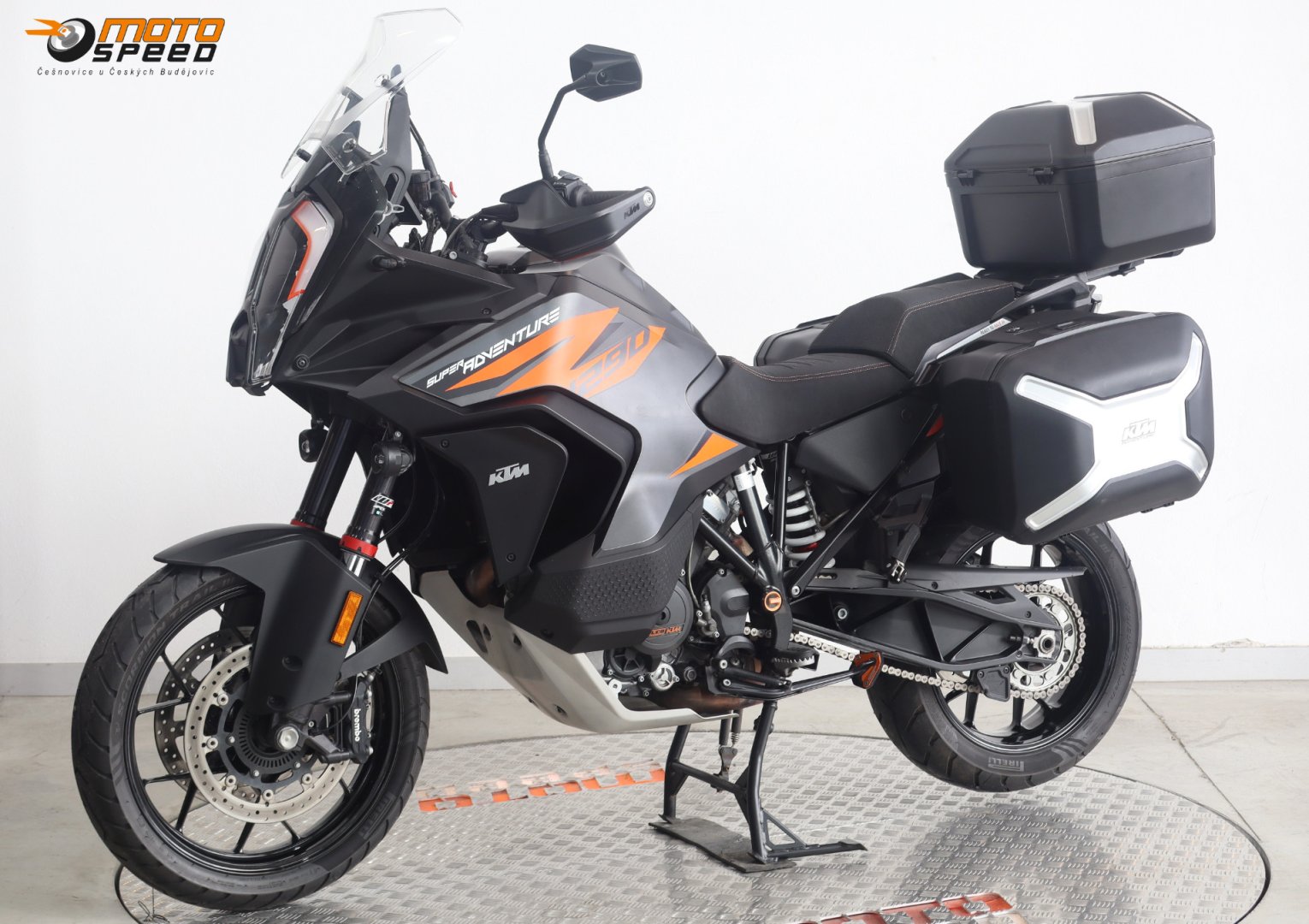 VÝBAVA: ABS, Elektronický semiaktivní WP podvozek - Street , Comfort, Sport, Motorové mody - Rain, Sport, Street, Off Road, Vyhřívané rukojetě, Asistent rozjezdu do kopce, Quickshifter rychlořazení, Adaptivní tempomat, Tlumič řízení originál, Laděný homologovaný výfuk ARROW, 3x originální kufry KTM, Vyhřívané sedačky Powerparts, Přídavná světla.