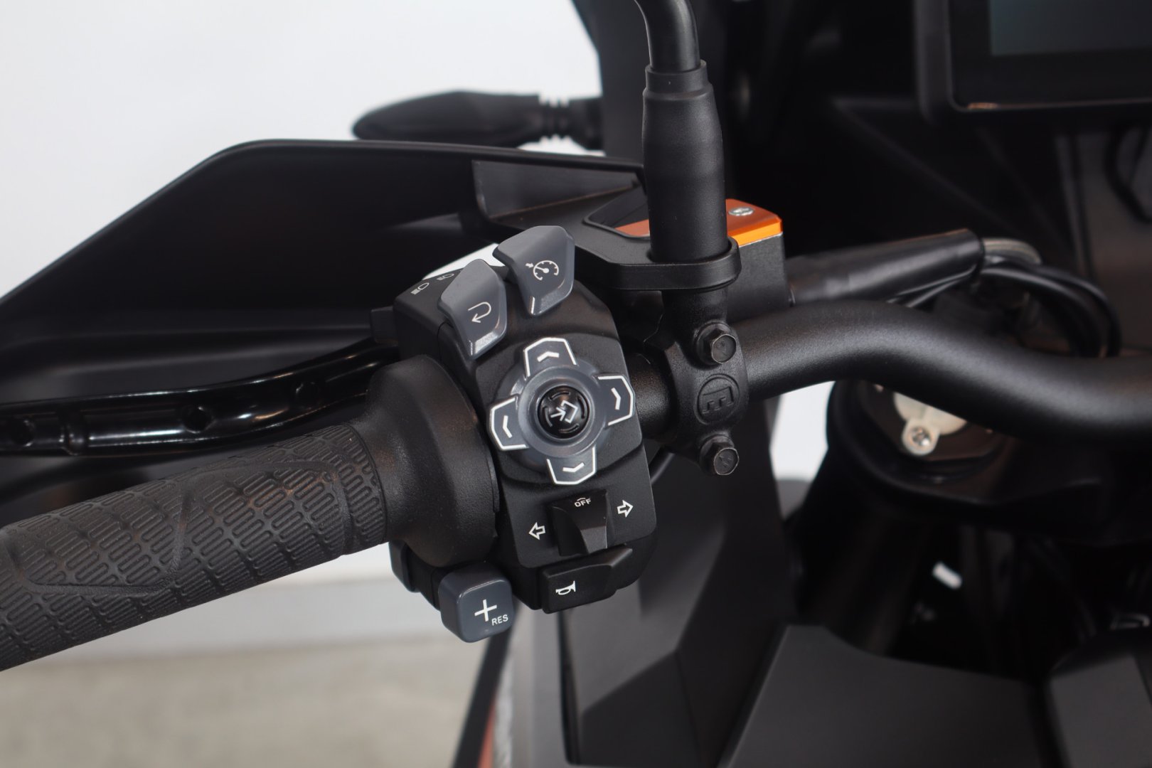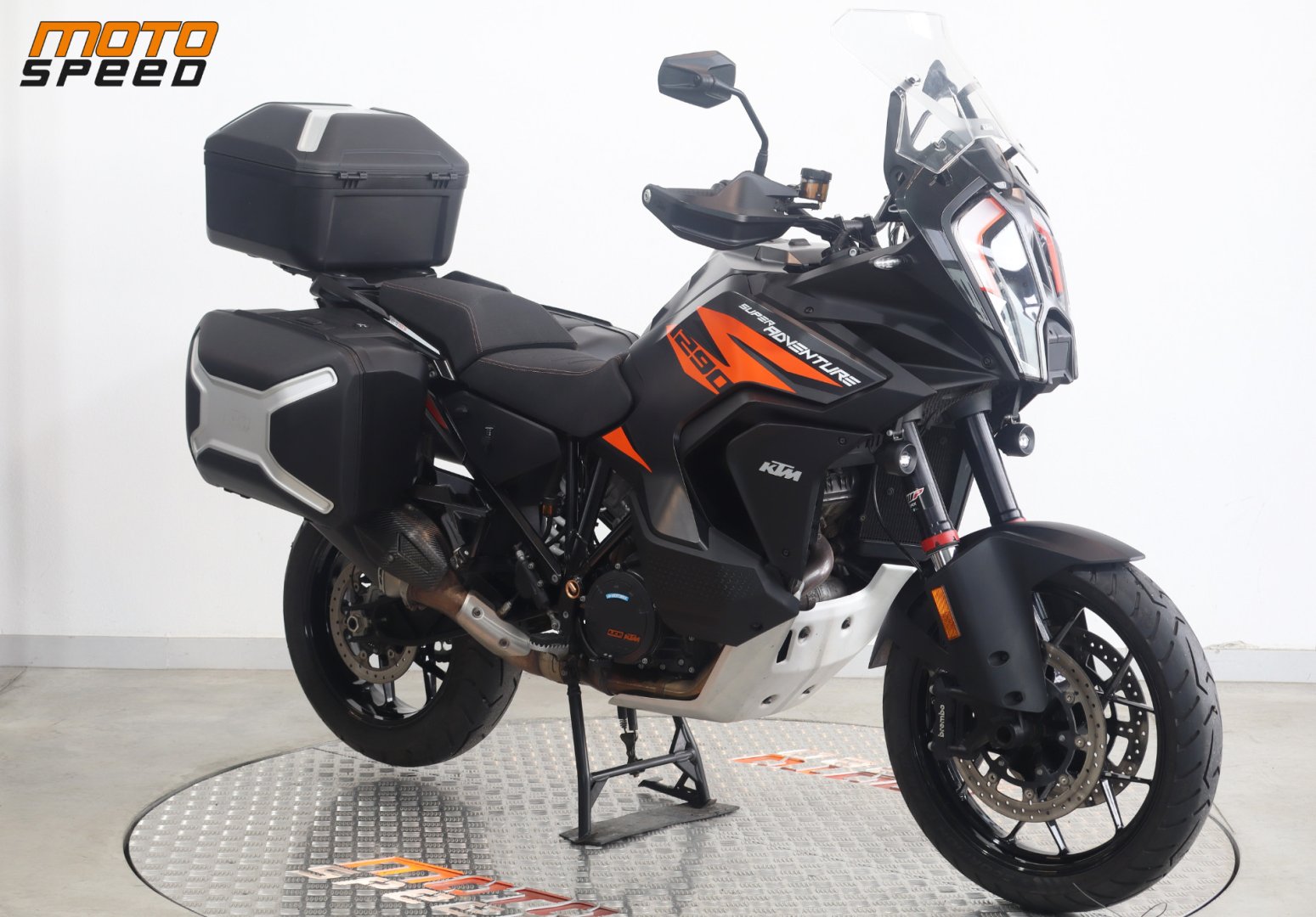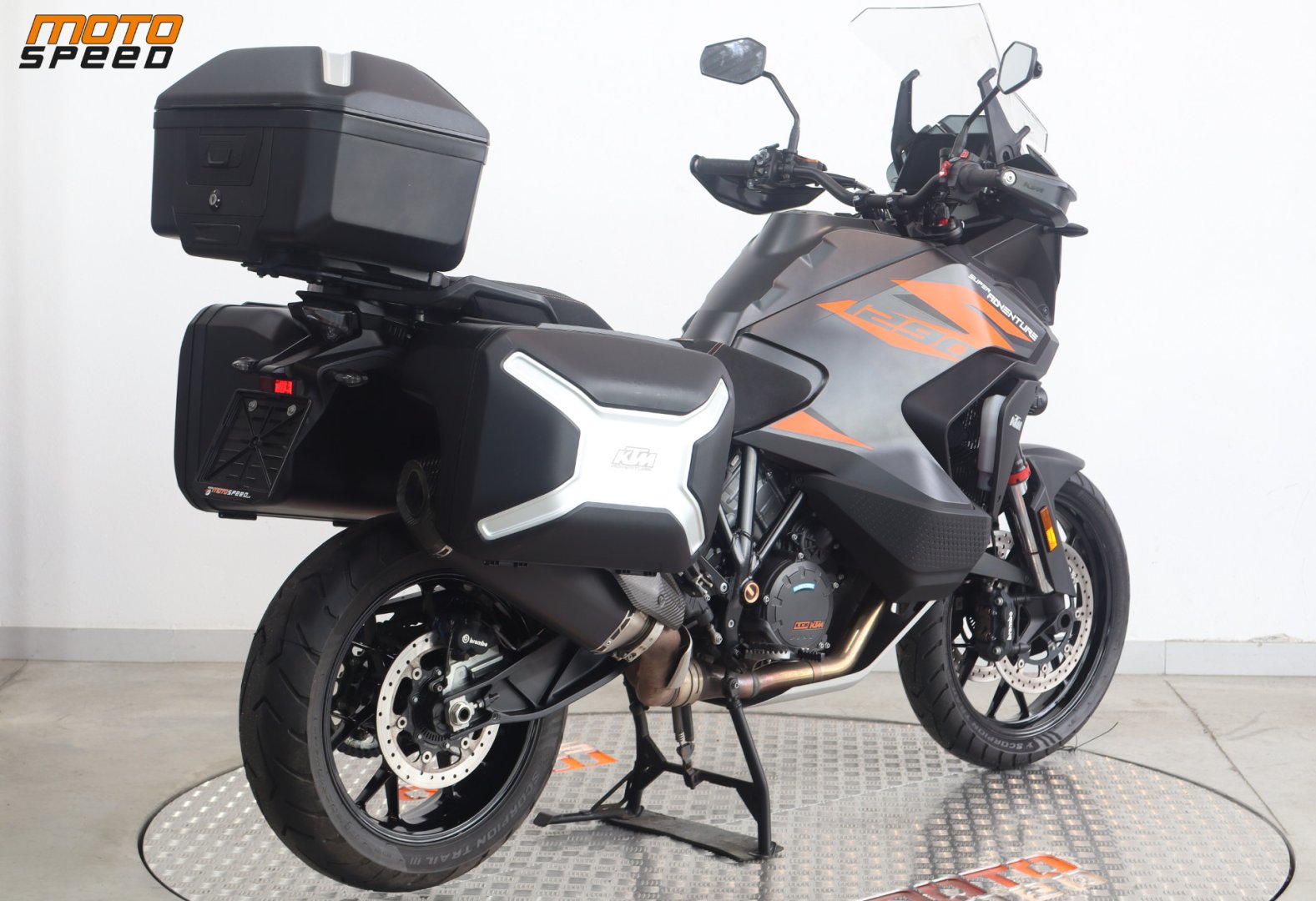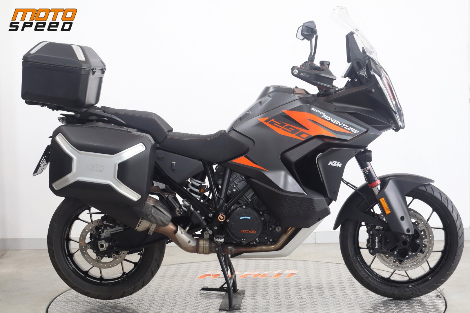 VÝBAVA: ABS, Elektronický semiaktivní WP podvozek - Street , Comfort, Sport, Motorové mody - Rain, Sport, Street, Off Road, Vyhřívané rukojetě, Asistent rozjezdu do kopce, Quickshifter rychlořazení, Adaptivní tempomat, Tlumič řízení originál, Laděný homologovaný výfuk ARROW, 3x originální kufry KTM, Vyhřívané sedačky Powerparts, Přídavná světla.